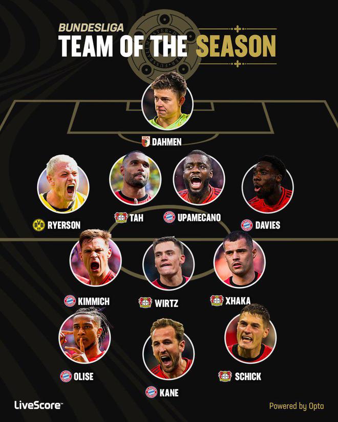 Opta更新德甲本賽季最佳陣容,拜仁5人入選,勒沃庫森4人