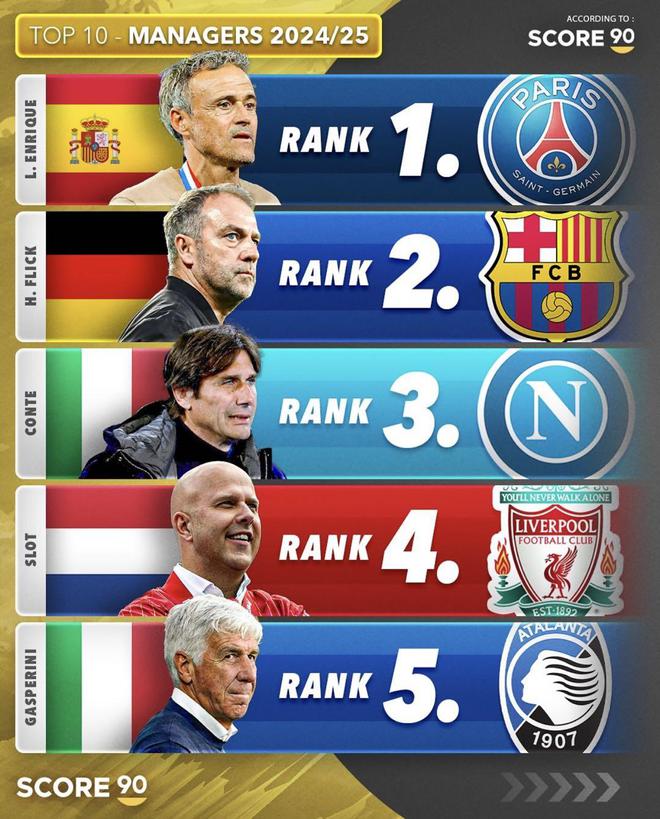 外媒評(píng)本賽季前十主帥:恩里克居首,弗里克第二,拉涅利入選