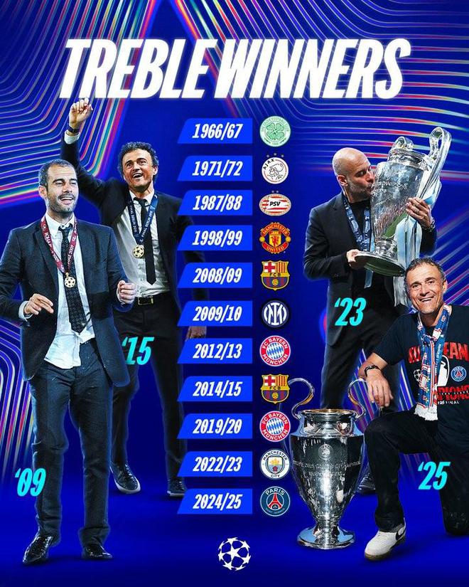 歐冠官方曬歷史三冠王球隊(duì):瓜迪奧拉、恩里克兩次上榜